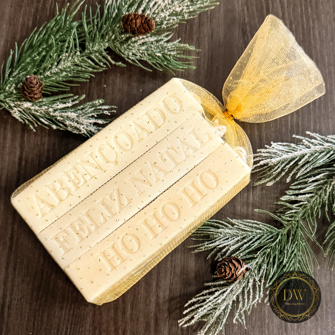 KIT 3 VELA AROMÁTICA E DECORATIVA PALAVRAS NATAL - 90 GRAMAS CADA/TOTAL 270 GRAMAS