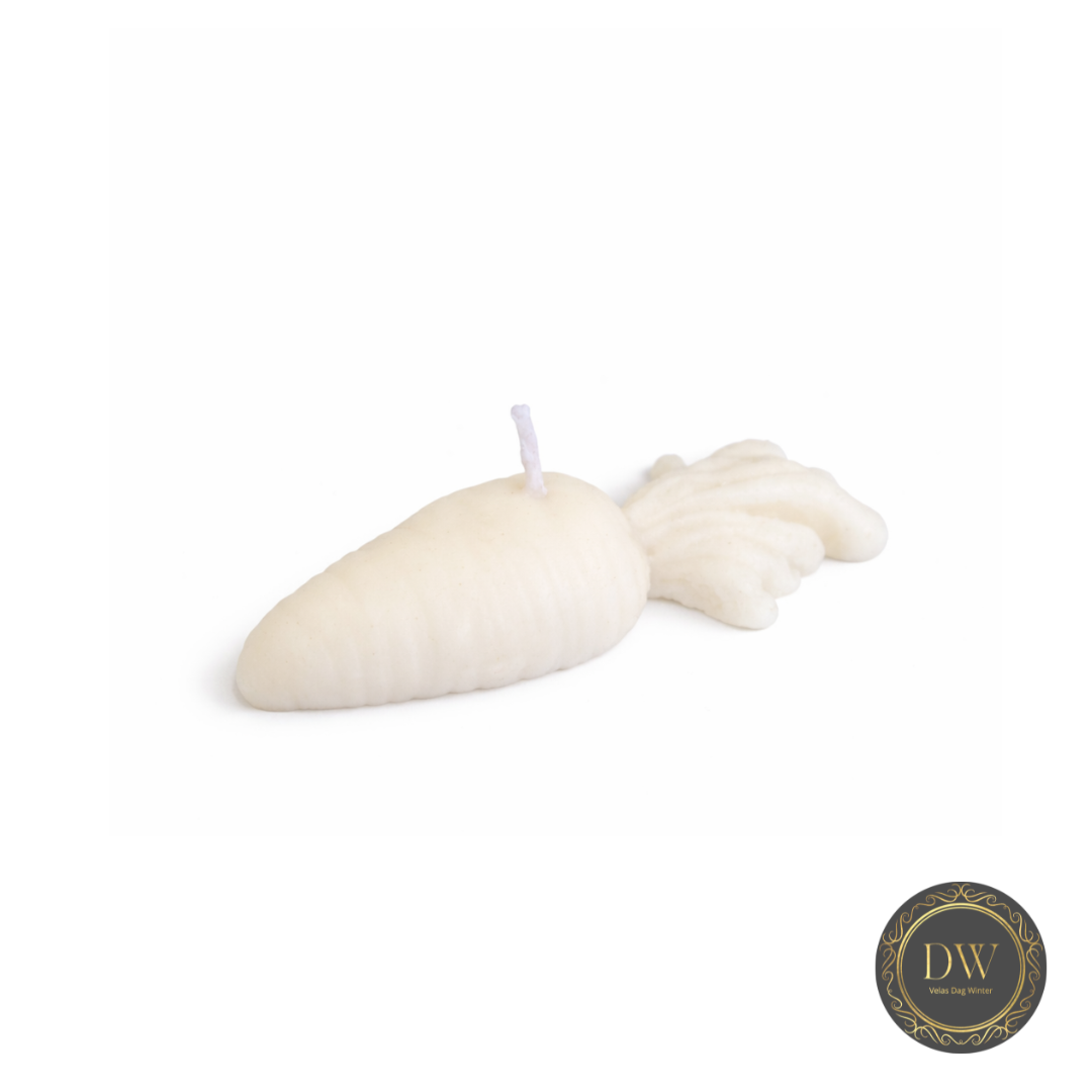Vela aromática em formato de cenoura.